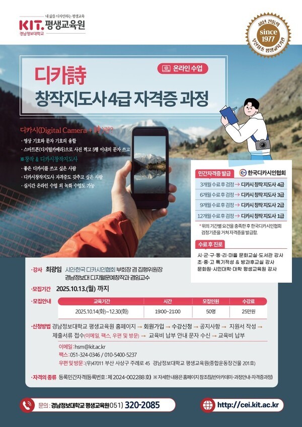 문의: 경남정보대학교 평생교육원 (전화 051-320-2085, 이메일 hsm@kit.ac.kr)