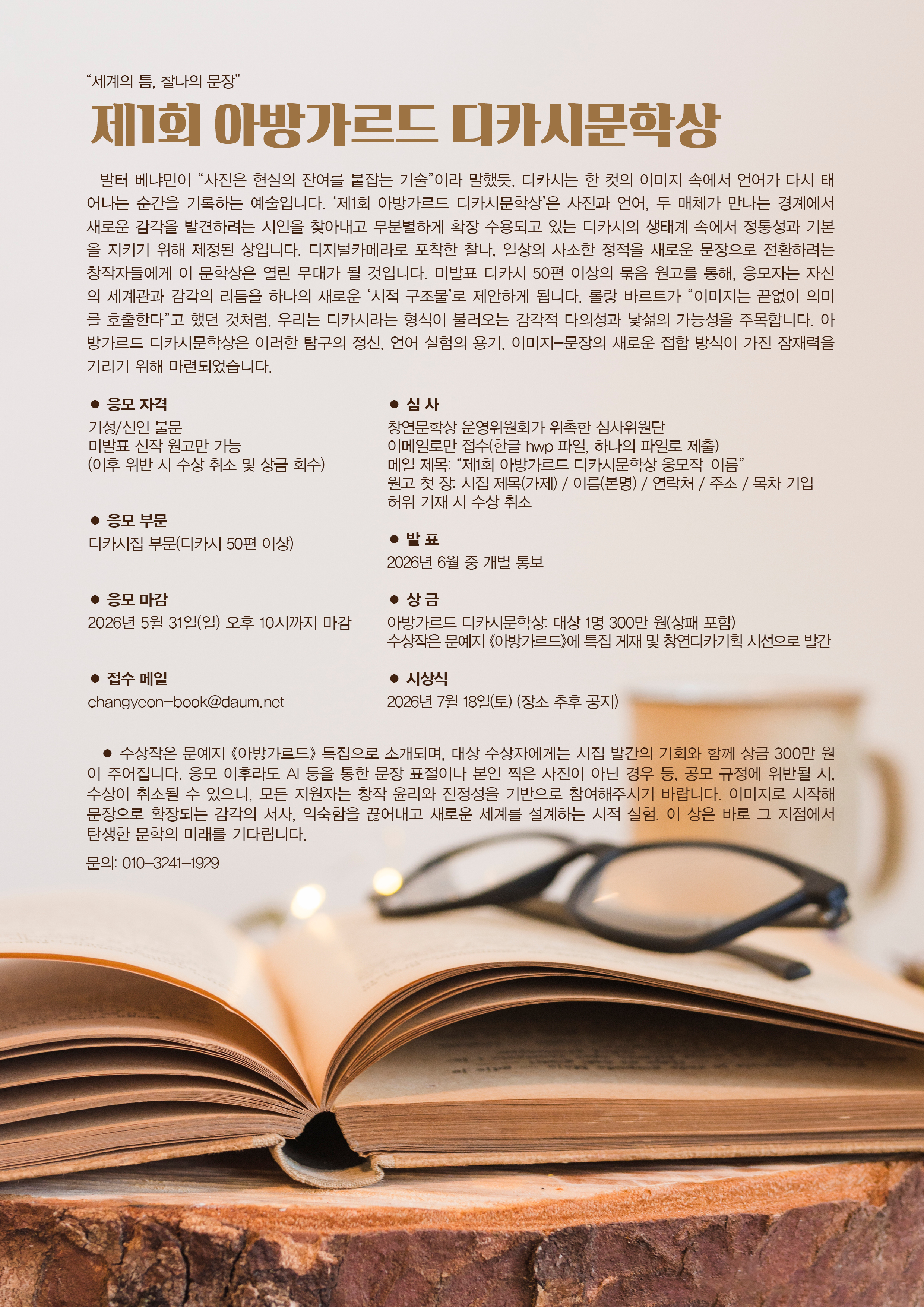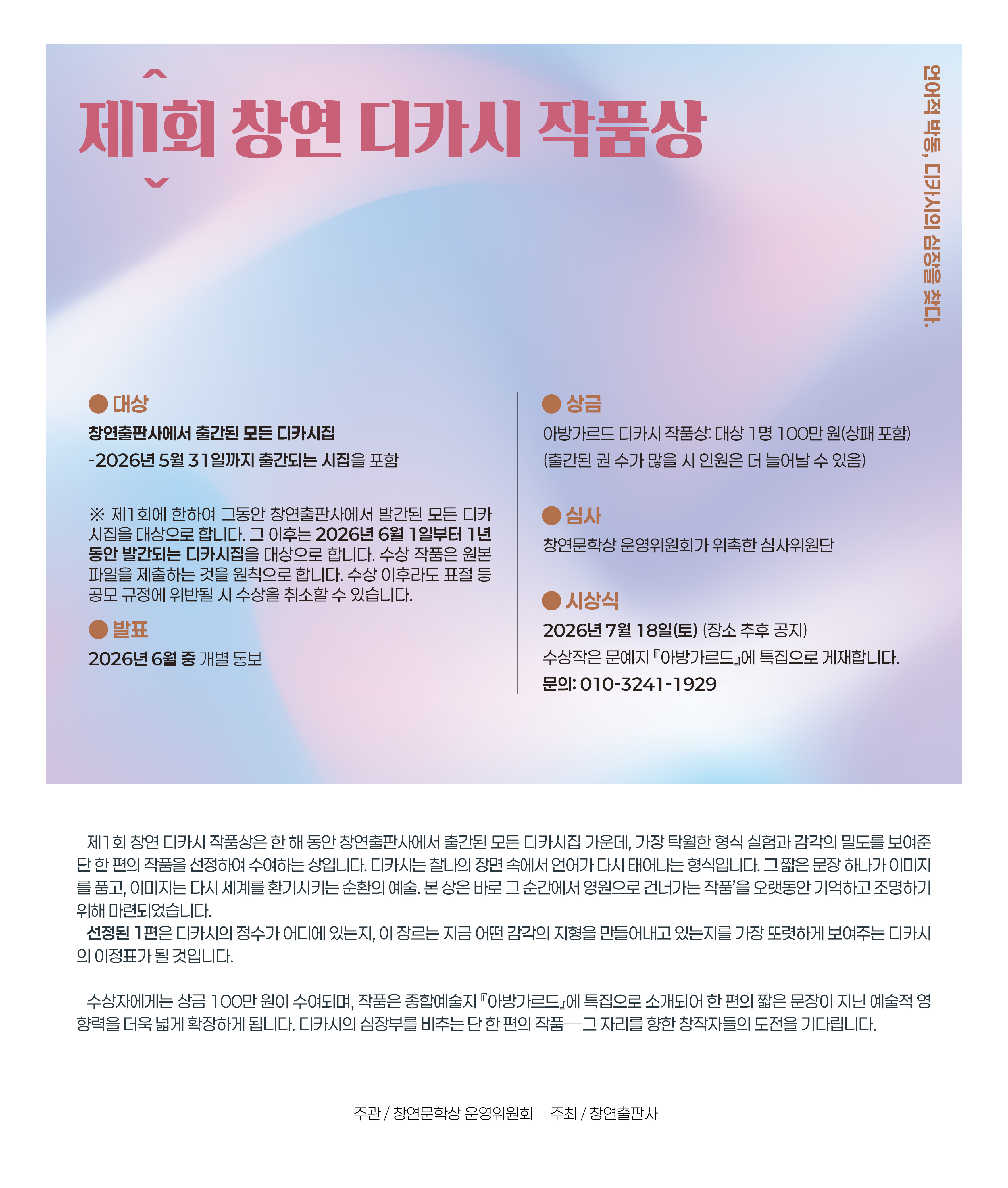 제1회 창연 문학상 / 아방가르드 디카시 문학상 /작품상(2026. 5. 31. 오후 10시 마감)
